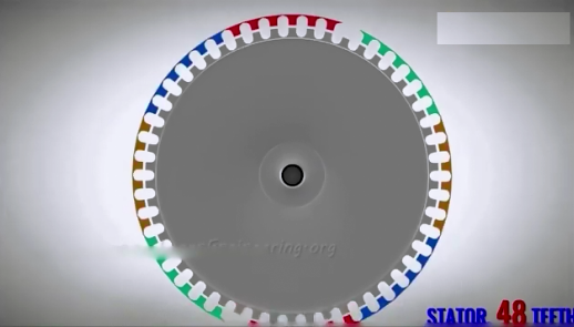 綠色組齒部移動(dòng)到與轉(zhuǎn)子齒部半對(duì)齊的位置,黃色組的齒部移動(dòng)到完全與轉(zhuǎn)子齒部完全錯(cuò)位,藍(lán)色組齒部移動(dòng)到與轉(zhuǎn)子齒部半對(duì)齊的位置,紅色組齒部原位不動(dòng)。簡(jiǎn)單的說(shuō),就是一組完全對(duì)齊,一組完全錯(cuò)位,兩組半對(duì)齊。